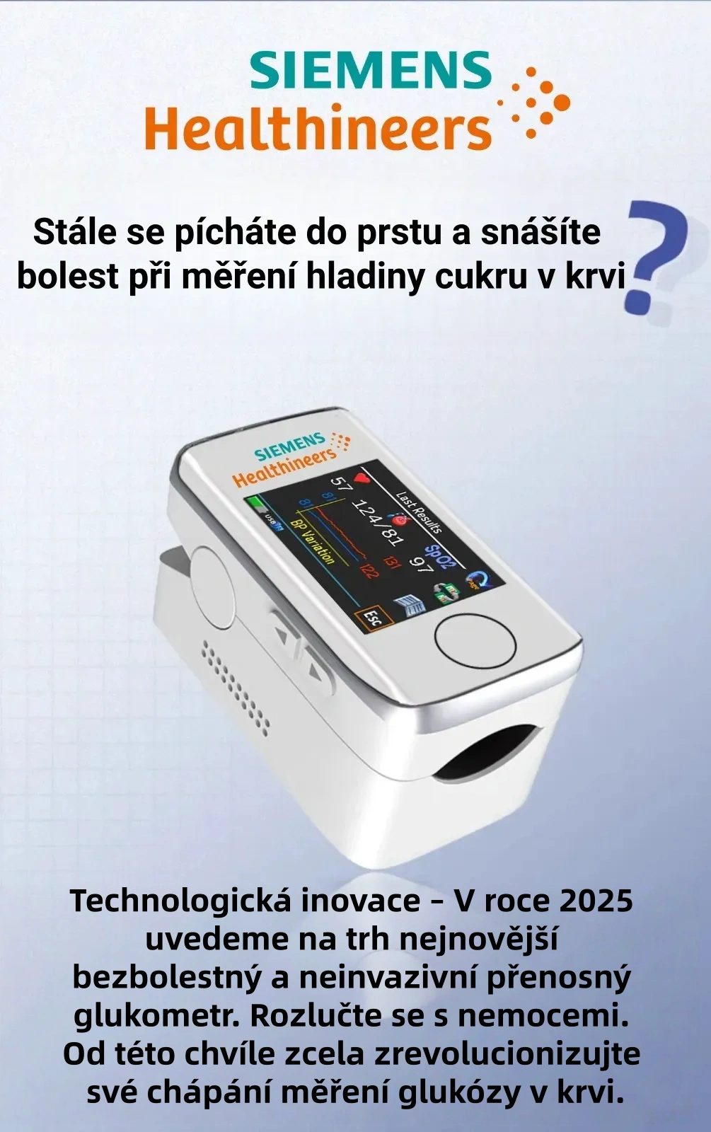 Siemens 2025: Vstupte do éry bez jehel! Revoluční glukometr pro pohodlné a diskrétní měření. Objevte budoucnost monitorování.